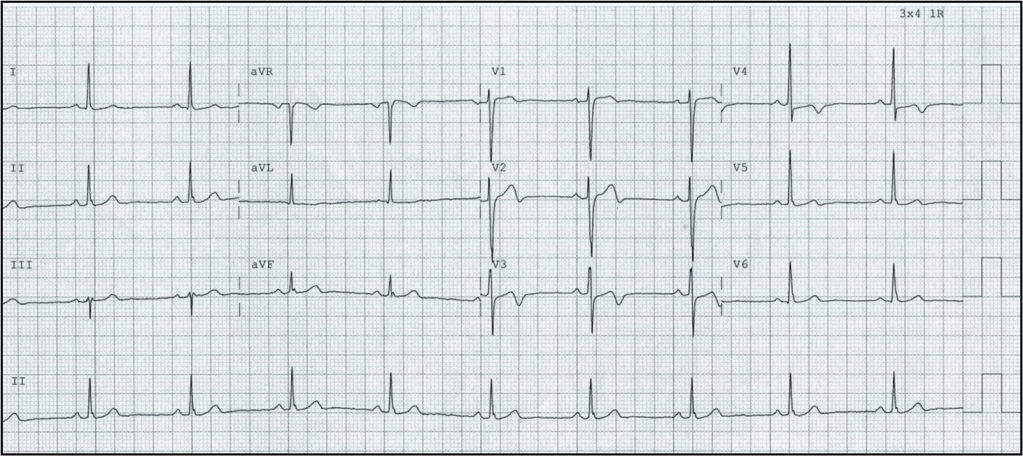 This 60-year-old male presented to ED with one hour of central chest pain. He thought it was acid reflux but his was worried because he didn’t look alright at all, so she drove him to the nearest ED. Sometime during the journey enroute to the ED, his pain resolved and he felt fine at the time of recording this ECG. He actually wanted to go home and see his GP the next day.